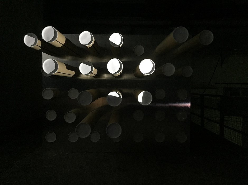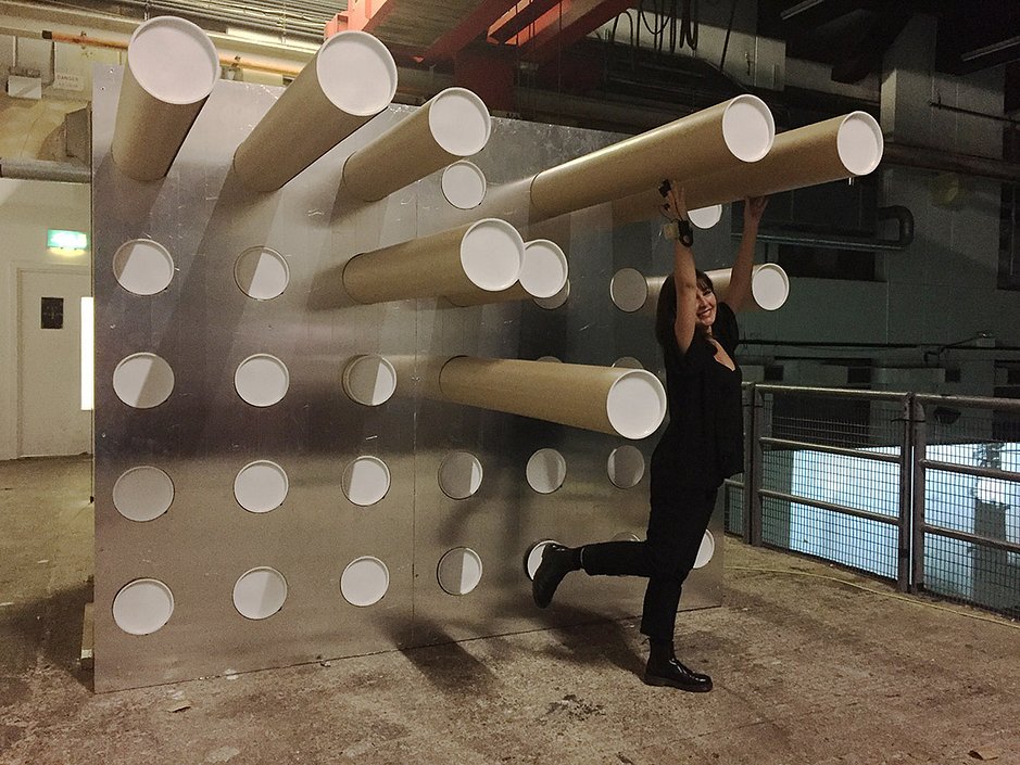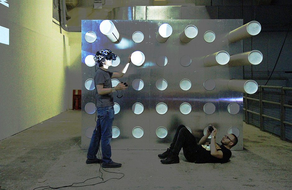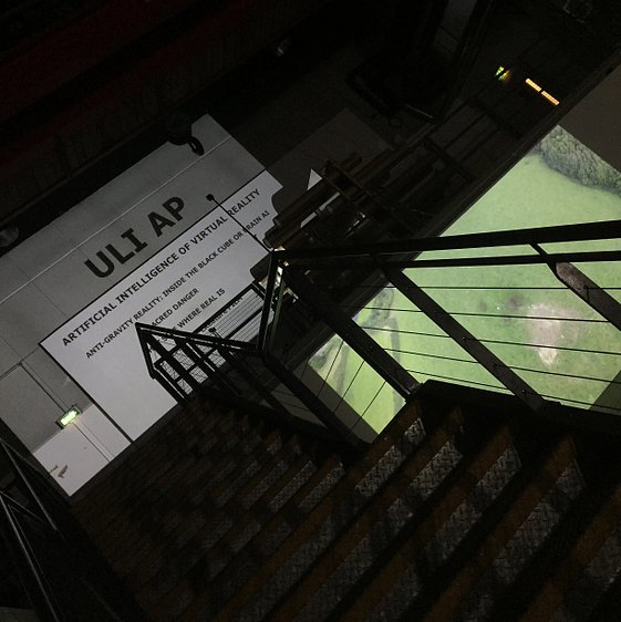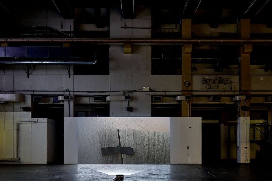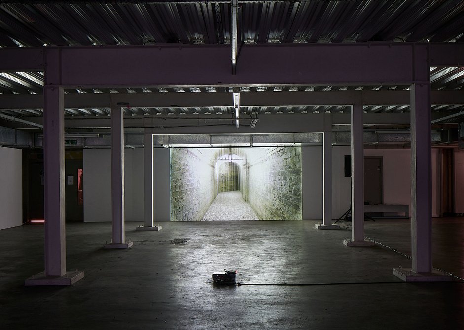 This site-specific intervention to an extraordinary underground concrete hangar of Ambika P3 is a prototype of Anti-Gravity Reality: Inside the Black Cube or Brain AI, a project that reinvents human relationships with a machine and takes a philosophy of labour as a port of departure – to construct art without artists and architecture without architects. By donating their emotions to a machine, audiences become performers experiencing situations of their own making and creating structures to become a part of an outside installation.