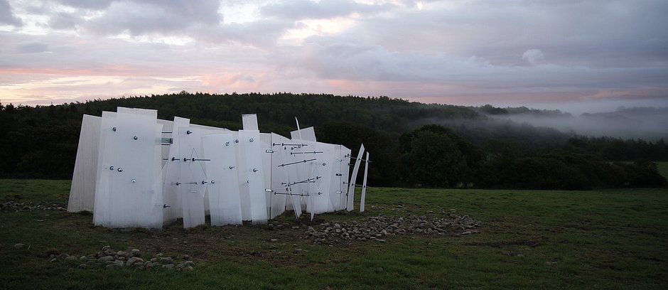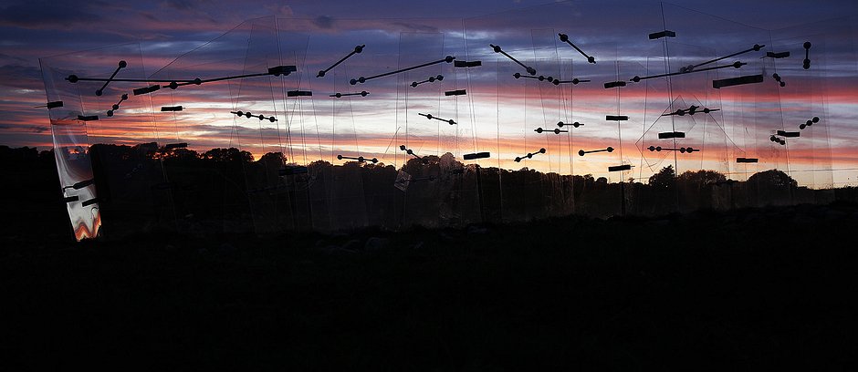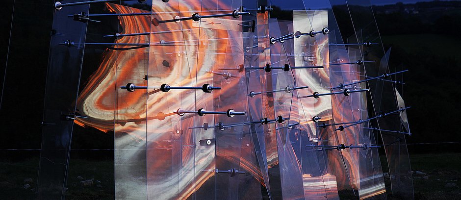 The effect being visible from the building's exterior as well as when moving about inside.